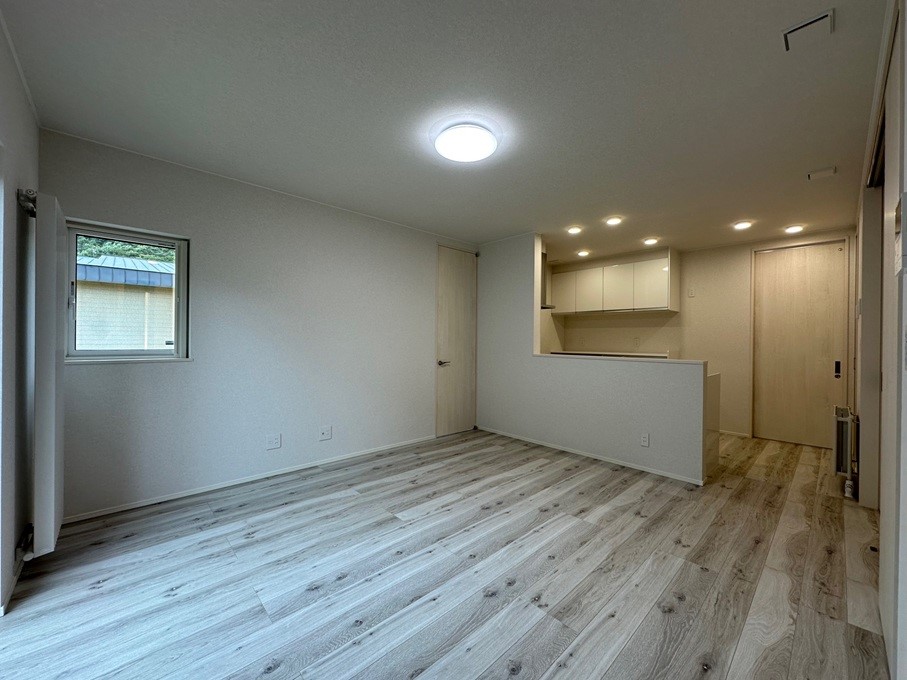 LDKの中央にはシーリングの照明がとても明るく、キッチンに関してはダンライトを散りばめた柔らかい雰囲気と作業のしやすさを意識しました。
