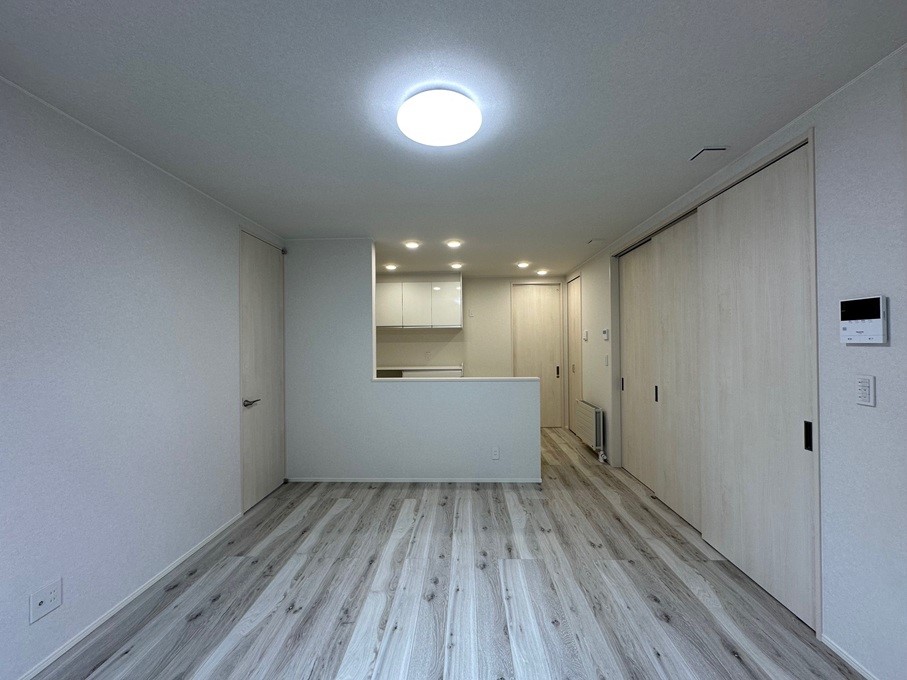 LDKの両サイドには、冒頭でお話した2m40cmの引き戸と開き戸が見えますが、天井まで高さがあると迫力がありスッキリ感がありますよね。