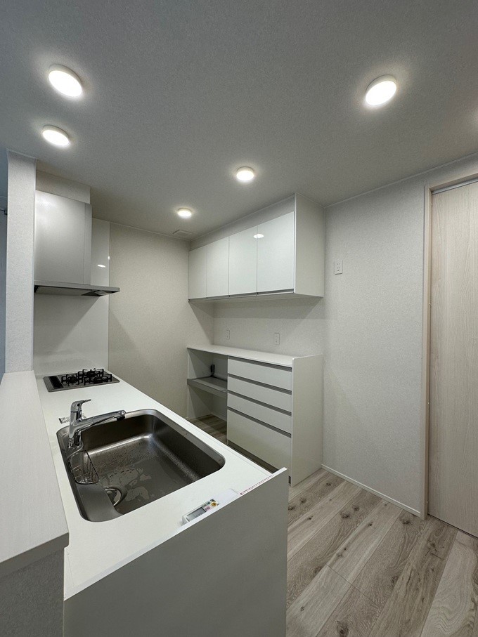 白を基調にしたキッチンは清潔感がありとても綺麗です。