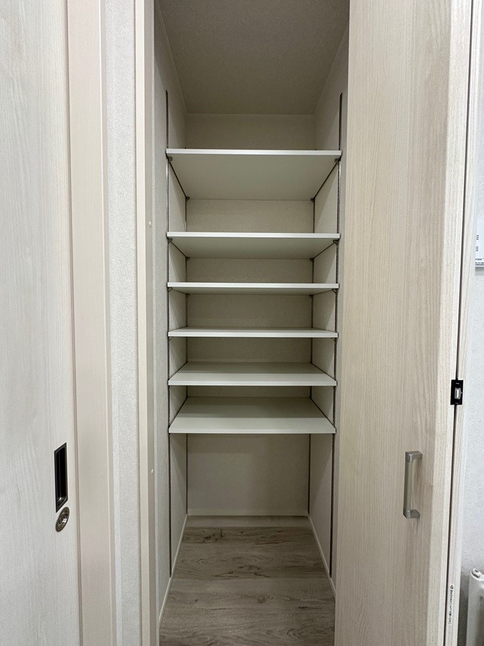 キッチン横の収納はパントリーとしても使用できますし、掃除機などを収納する場所としても利用できます。
