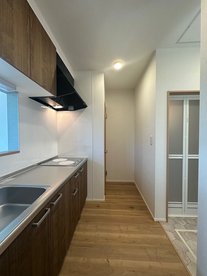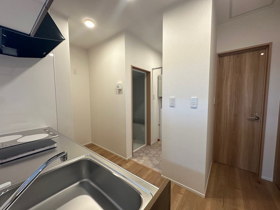2階キッチンから洗面室を見た画像です。