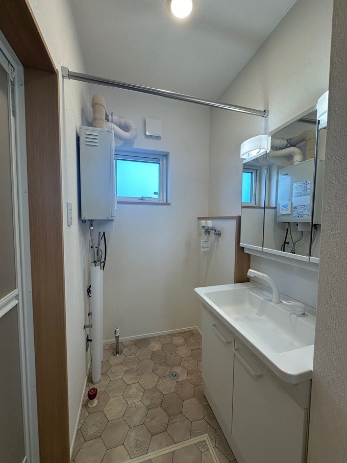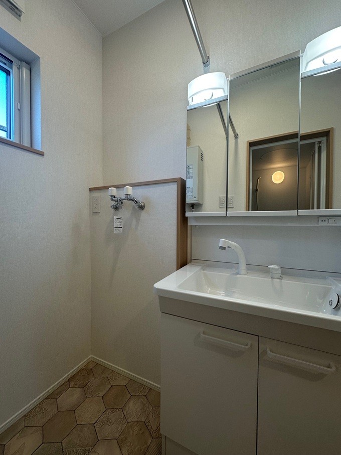 洗面室の床は耐水性の高いクッションフロアを採用し防水も心配ありません。